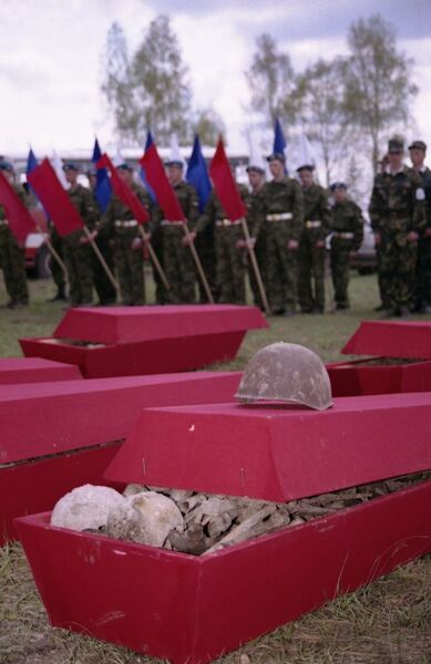 В Белоруссии все по-другому. Там есть специальные подразделения, которые этим занимаются, там это поставлено на государственный уровень. А в России это организации общественные, их мало, и они ведут поисково-розыскную деятельность на общественных началах. Хорошо, что эти организации совмещают еще и работу с молодежью вместе с поисковым движением. На вахтах (вахта - это когда несколько поисковых отрядов собираются в каком-то месте и делятся опытом, производят раскопки) очень много молодых ребят, даже от шести лет до 15-18, иногда это трудные подростки. Очень часто они не уходят потом из этого дела, остаются. Это и патриотическое воспитание, и спортивное, там формируется такое понятие, как дисциплина. Там иногда попадаются снаряды, взрывчатые вещества... Все-таки это серьезные вещи. Бойцов лежит очень много, очень много неизвестных. Когда наступали фашистские войска, они наших не хоронили, скидывали тела в ямы, воронки от снарядов и просто засыпали землей. Само собой, никто не знает, где это. Приходится с миноискателями, со щупами ходить и искать по лесам.