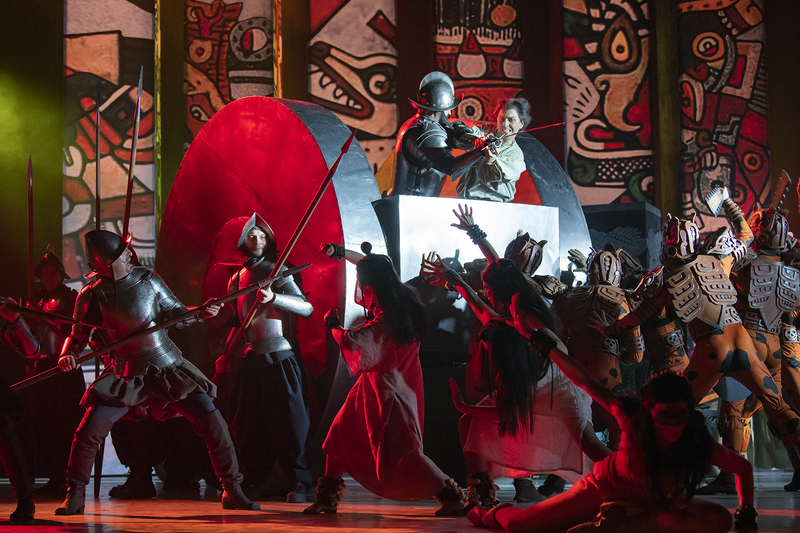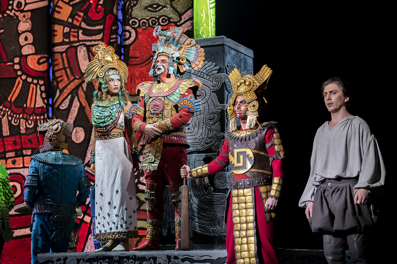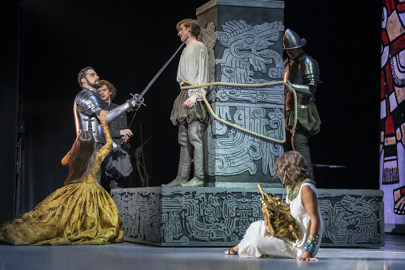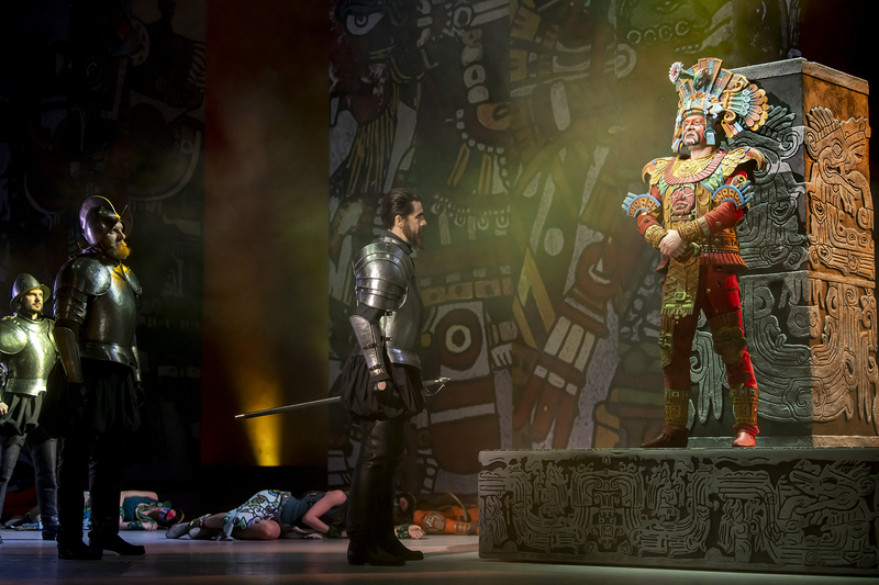 Художник-постановщик Владимир Арефьев вдохновлялся древним искусством ацтеков и конкистадоров, поэтому в оформлении спектакля используются яркие этнические орнаменты, основанные на древних рукописных изображениях. На сцену выезжает огромная сияющая колесница, а костюм вождя Монтесумы воссоздан с исторической точностью. Но главное в мюзикле – это вечные ценности: любовь и верность, добро и зло, честь и предательство.