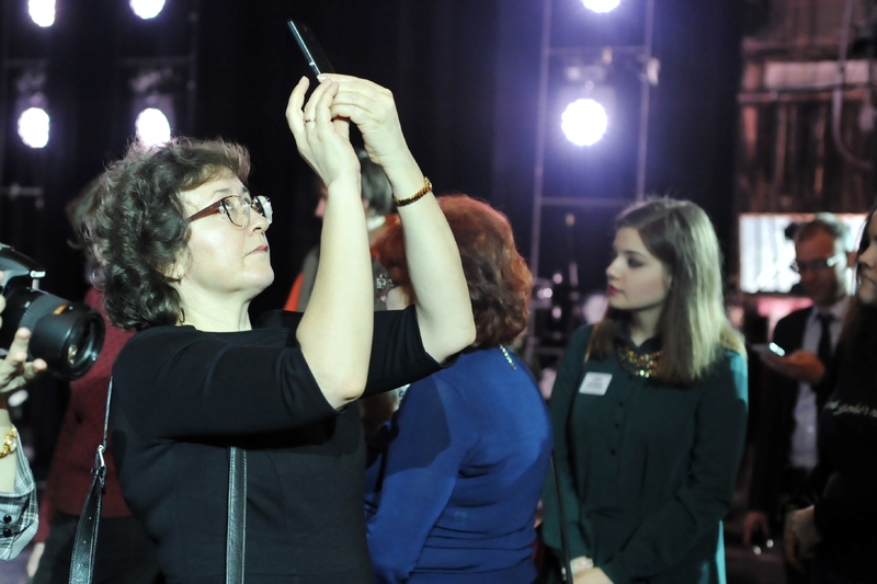Наши гости побывали на сцене театра, узнали о том, как монтируются декорации. О тонкостях театральной машинерии экскурсантам рассказал начальник машинно-декорационного цеха А.Н. Максимов. Ведущий солист театра Александр Каминский показал гостям уникальный театральный зал, гримуборные солистов театра, а также гримерно-постижерный цех, где в тот момент гримеры готовили парики для спектакля. Участники акции побывали в мебельно-реквизиторском цехе и познакомились с реквизитом и малогабаритными элементами мебели и декораций, которые используются в спектаклях текущего репертуара. Посетителей экскурсии смогли пообщаться с народным артистом России, легендарным Герардом Васильевым.