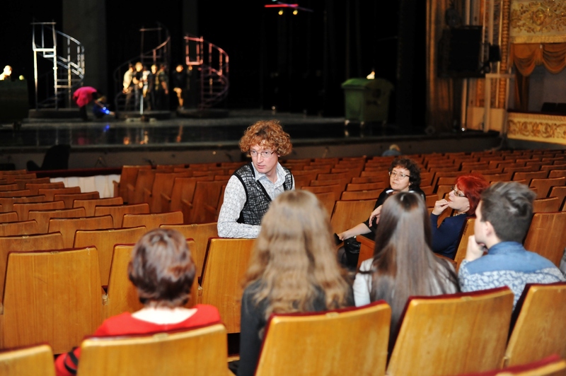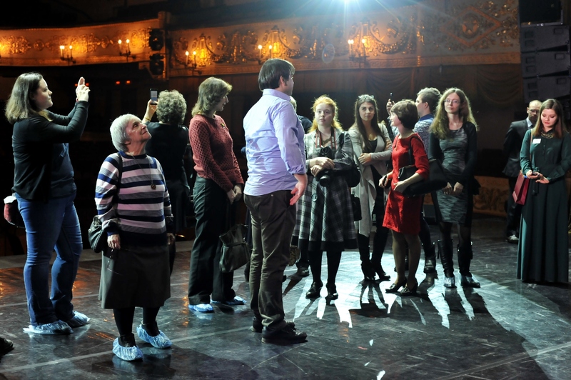 Наши гости побывали на сцене театра, узнали о том, как монтируются декорации. О тонкостях театральной машинерии экскурсантам рассказал начальник машинно-декорационного цеха А.Н. Максимов. Ведущий солист театра Александр Каминский показал гостям уникальный театральный зал, гримуборные солистов театра, а также гримерно-постижерный цех, где в тот момент гримеры готовили парики для спектакля. Участники акции побывали в мебельно-реквизиторском цехе и познакомились с реквизитом и малогабаритными элементами мебели и декораций, которые используются в спектаклях текущего репертуара. Посетителей экскурсии смогли пообщаться с народным артистом России, легендарным Герардом Васильевым.